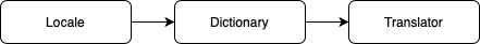 A Locale is used to create a Dictionary, which is then used by the Translator. The overall flow can be visualized as :
